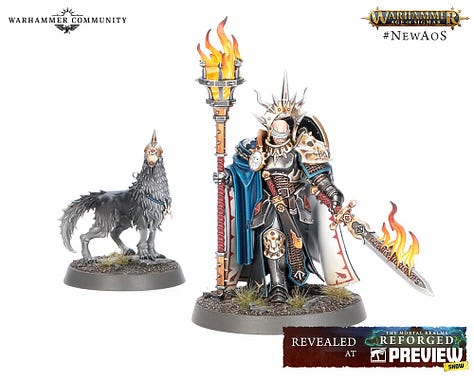 I’m a huge fan of the current Skaven models, especially the characters, and that Grey Seer is a particularly nice sculpt. I wasn’t hugely enamoured with the Stormcast Eternals when they first arrived- I didn’t like their background and most of the miniatures left me cold but since the background has been made a little more grimdark, and the more recent miniature releases have reflected that, I admt they have grown on my somewhat. I’m never going to do backflips over the troops models but the characters are looking great, and I do rather like the Lord Veritant. The excellent ‘eavy Metal paintjobs really do the sculpts justice, too.2